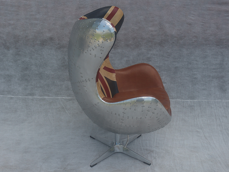 Product name: Riveted Aluminium Covered Aviation Union Jack Chair Vintage Industrial Metal Base Leisure