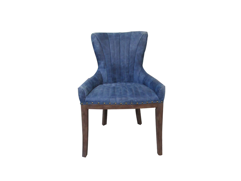 Product Name:Blue High Back Leather Dining Chair With Wood Legs Armless For Restaurant Living Room Office Hotel