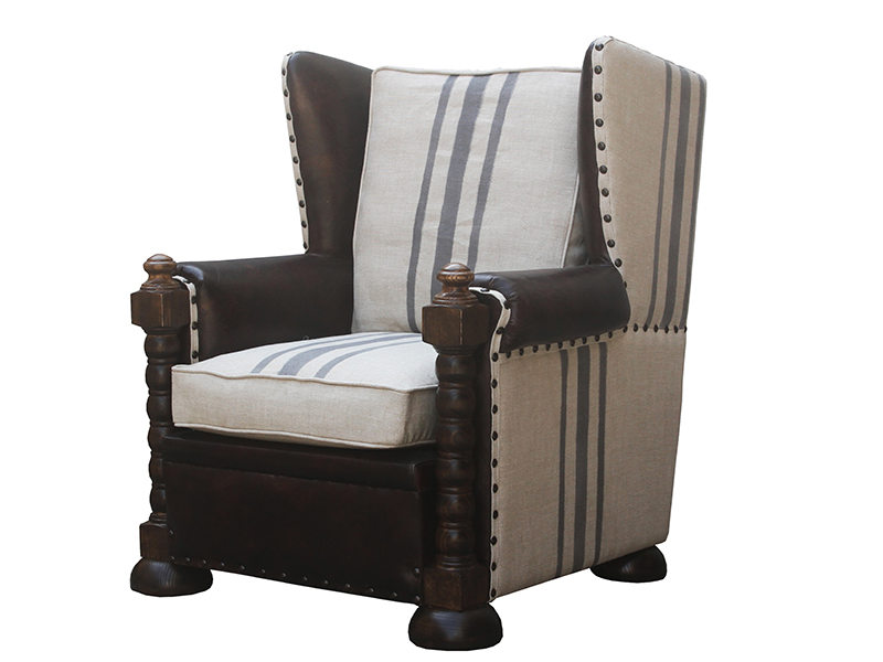 Vintage Leather Chair with Canvas Back