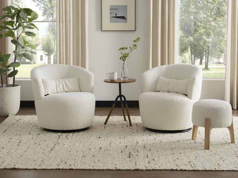Amber Bouclé Swivel Chair, Snow