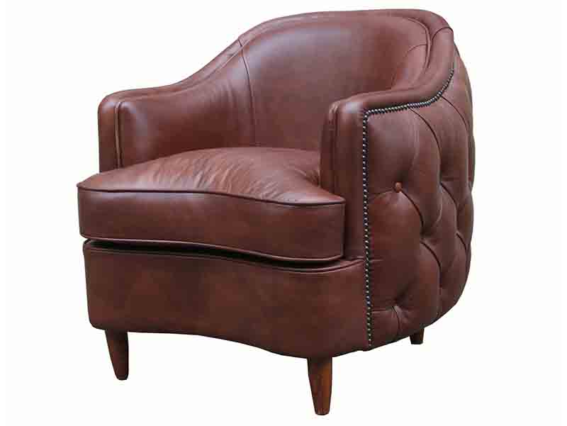 Button Cover Vintage Brown Leather Armchair