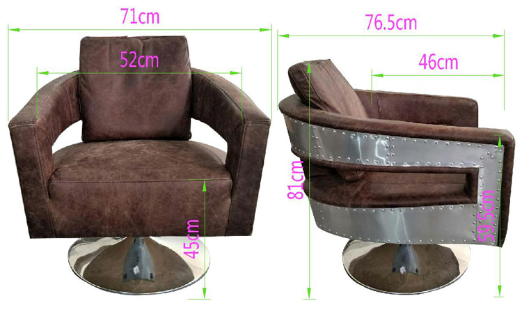 1. Product name:Brown Vintage Leather Seat Sofa Chair Aluminium Back Brass Inner Armrest Use In Dining Room Club