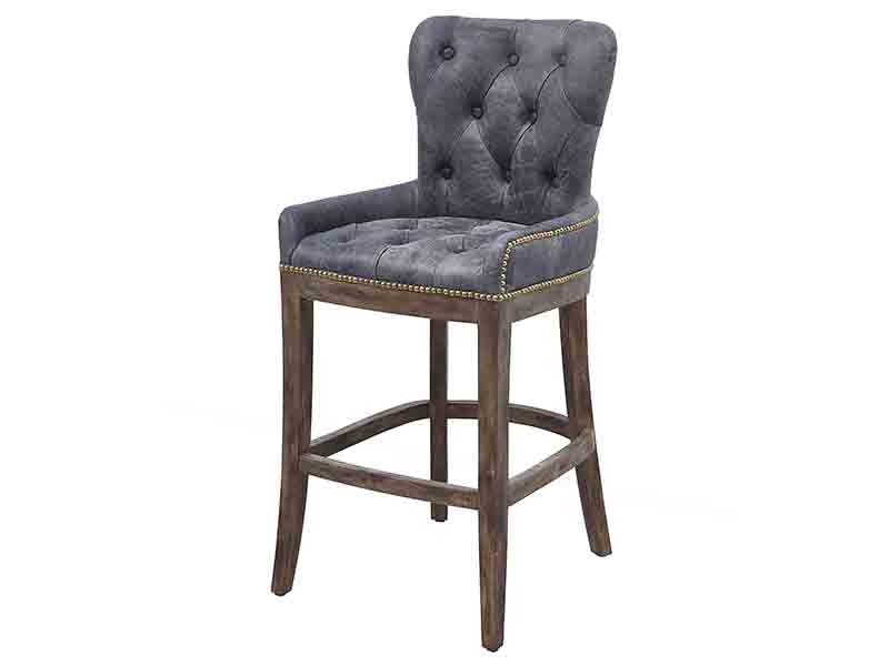 Product Name: Gray Vintage Leather Oak Wood Bar Chair
