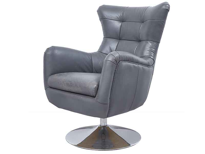 Product Name: Vintage Gray Leather Wing Back Swivel Chair