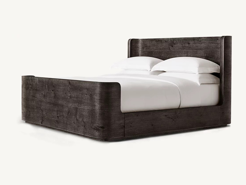 Brown Color King Size Bed White Oak Solide Wood Bed