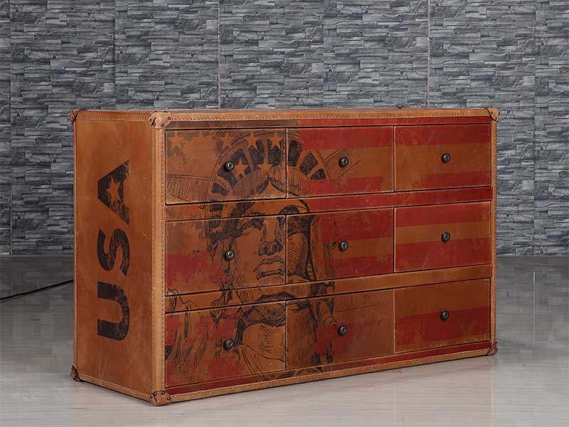 Product Name: Antique Leather Chest With American Flag Print