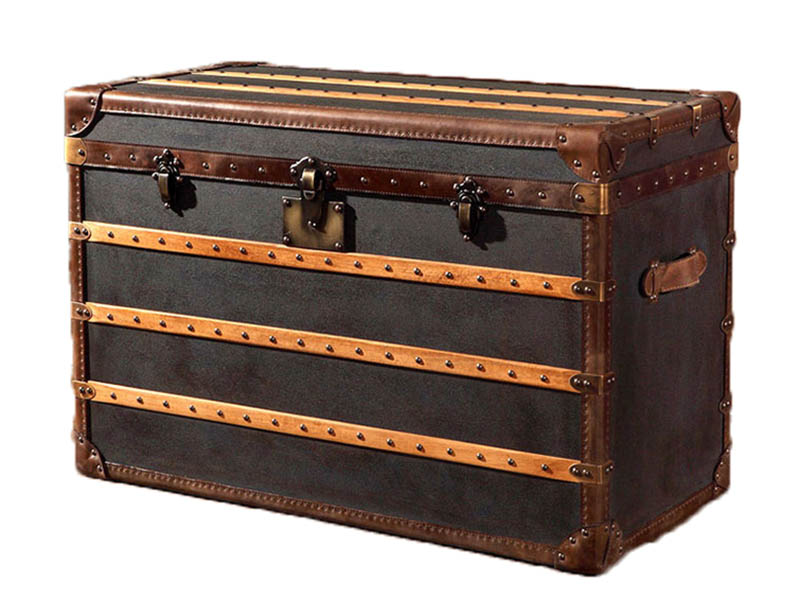 Product Name: Vintage Blue Canvas Side Trunk With Brass Trim