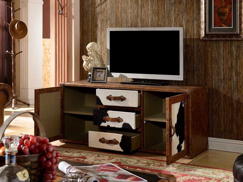 Product Name: Vintage Cowhide Leather TV Stand with Drawers