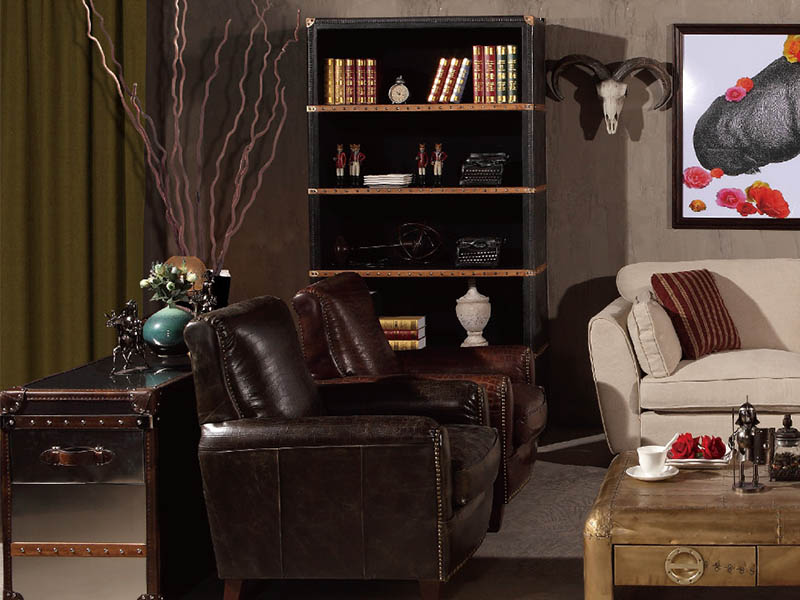 Product Name: Vintage Black Leather Single Bookshelf