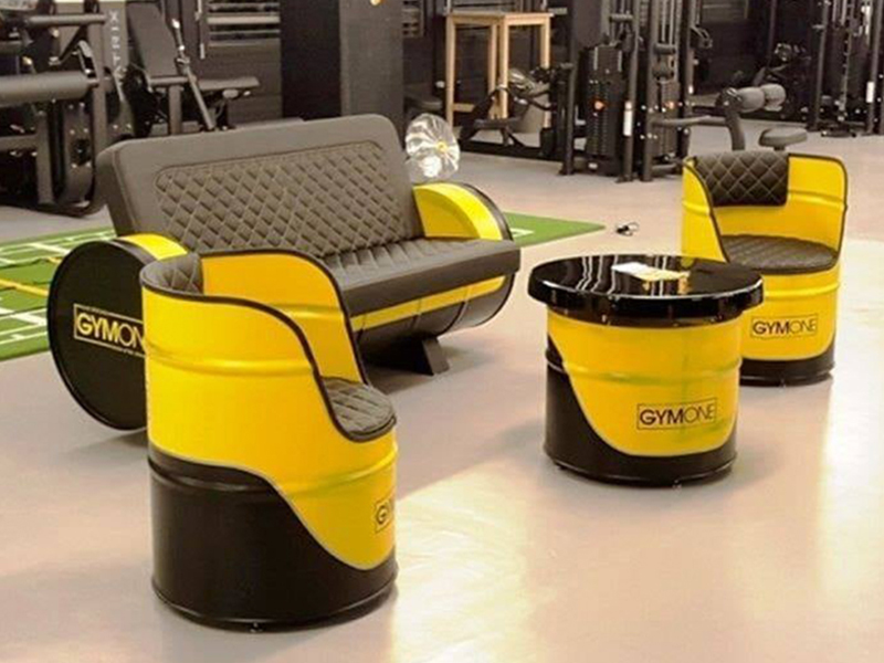 Type: Iron Oil Drum Restaurant Bench Leather Sofa