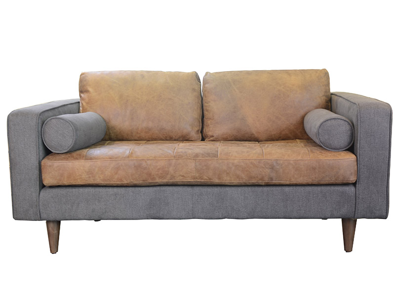 Product Name: 2 Seater Mid-century Solid Wood Frame Vintage Leather Sofa For Office