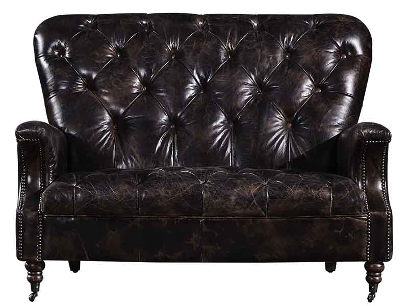 Product Name: Tufted Back Black Vintage Leather Sofa