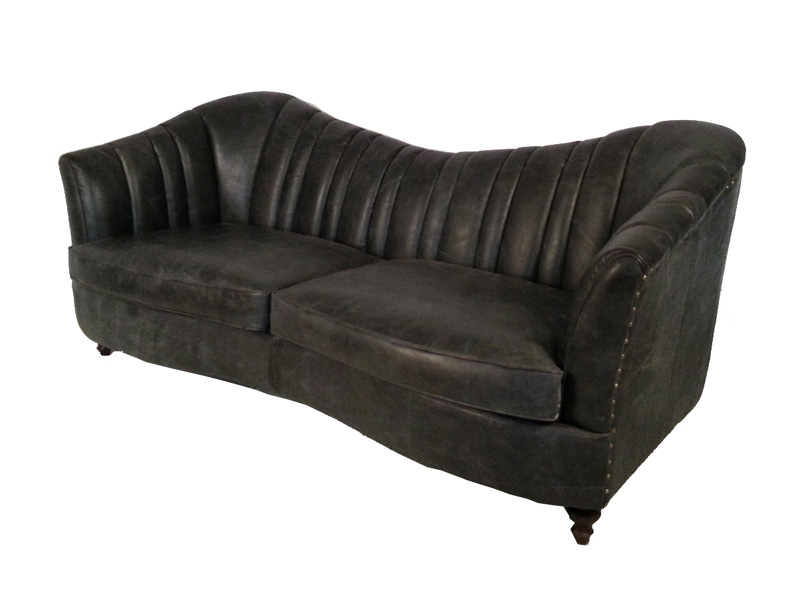 Black Grain Cow Leather Sofa