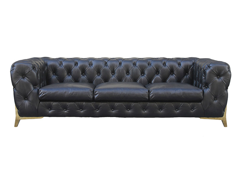 Luxury Black Tufted Leather Sofa Couch with Golden Leg