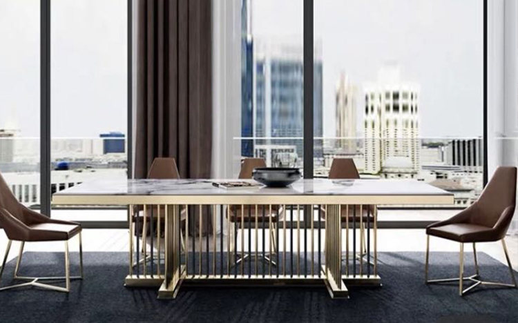 Modern Luxury Gold Stainless Steel Leg Marble Restaurant Table 8 Seater Marble Coffee Table