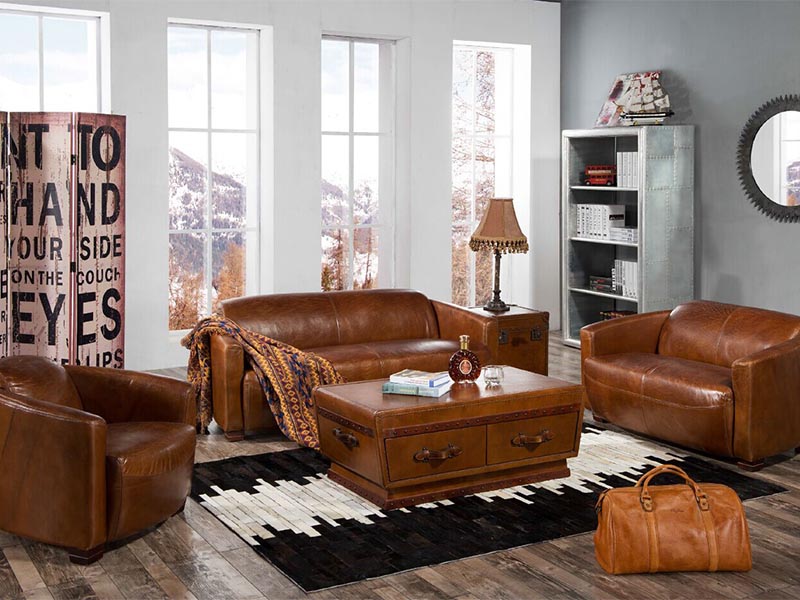 Retro Brown Grain Leather Coffee Table