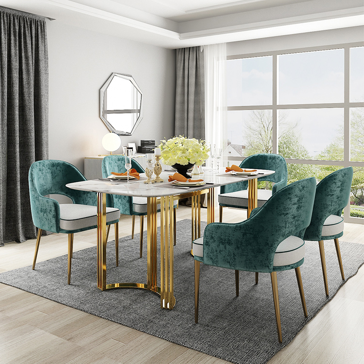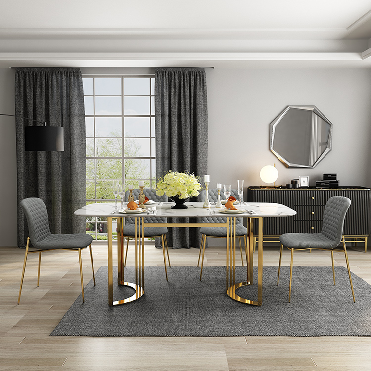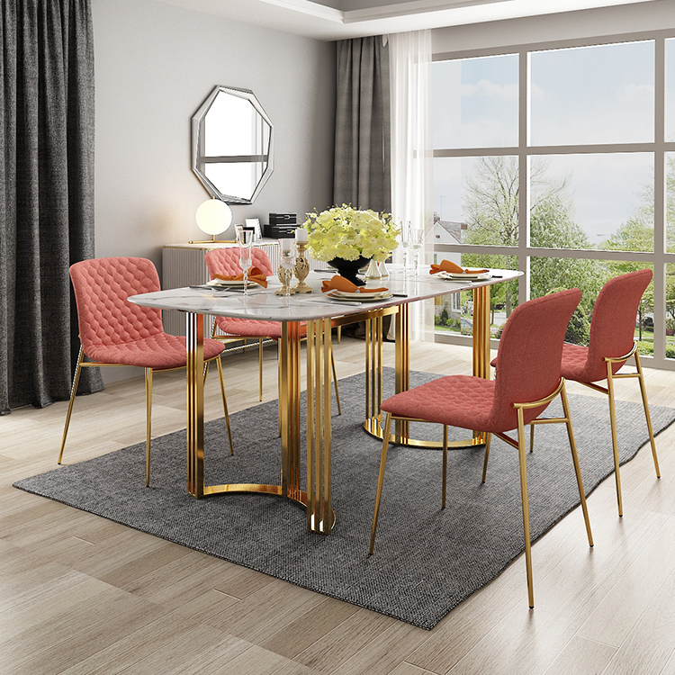 Italian Luxury Natural Marble Dining Table Electroplated Stainless Steel Metal Base Dining Table