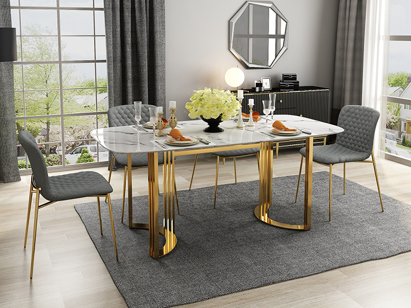 Product Name: Italian Luxury Natural Marble Dining Table Electroplated Stainless Steel Metal Base Dining Table