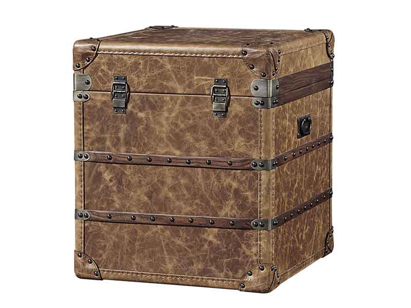Product Name: Rattan and Vintage Leather Side Trunk