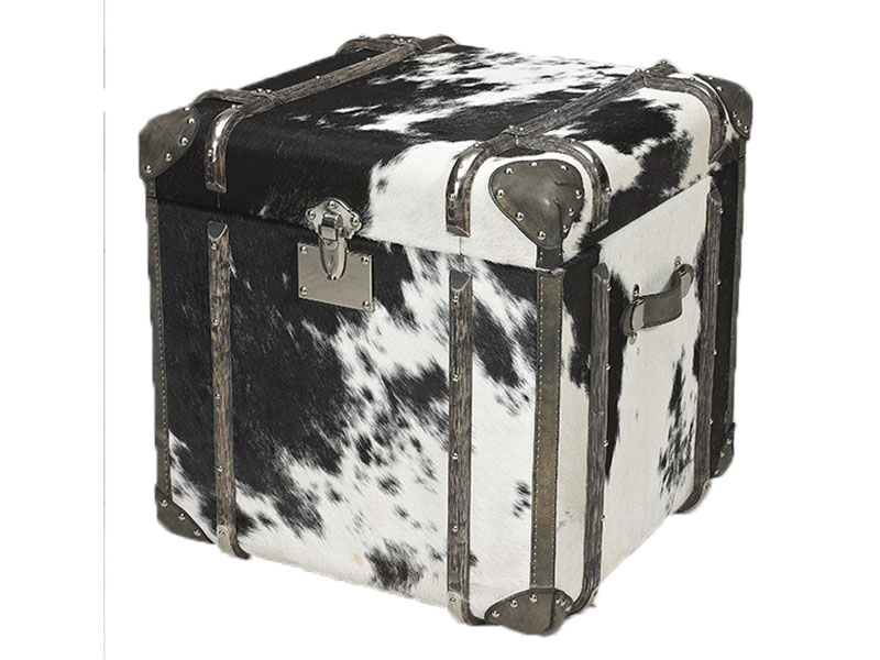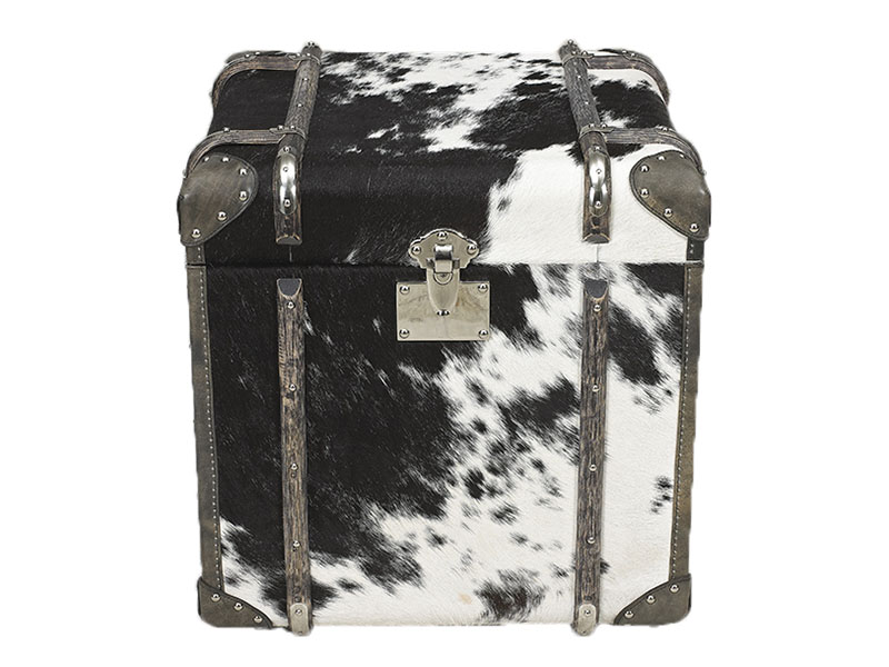 Vintage Cow Leather Side Trunk With Rattan